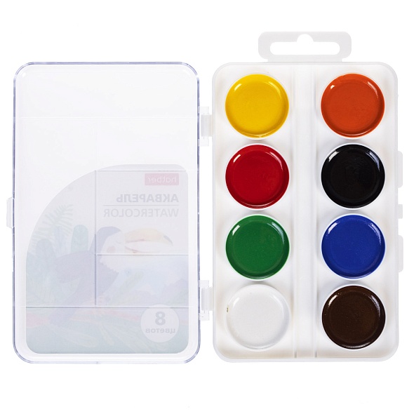 Акварель предназначена для изобразительного творчества детей. Акварельные краски очень нежные и прозрачные, наполненные светом и воздухом, с их помощью можно создавать прекрасные светлые картины. Важным достоинством медовой акварели является ее повышенная устойчивость к выгоранию под воздействием прямых ультрафиолетовых лучей. С ее помощью школьник сможет легко освоить технику рисования, научится смешивать цвета для получения необходимых оттенков. Цвета чистые, краска не дает осадка, быстро сохнет и обладает хорошей разносимостью на бумаге. Количество цветов: 8. Объем кюветы 3,5 см3. Удобная пластиковая упаковка с европодвесом и палитрой для смешивания красок на крышке.