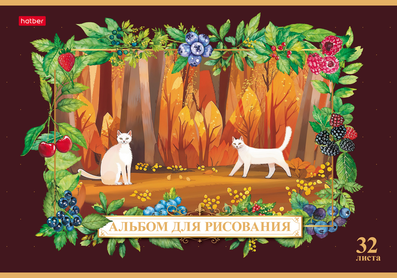 Альбом для рисования формата А4 на 32 листа с ламинацией «Soft-Touch». Серия «Из жизни котиков». Удобный формат на скобе.