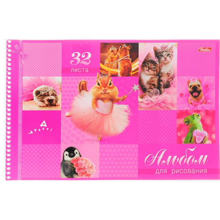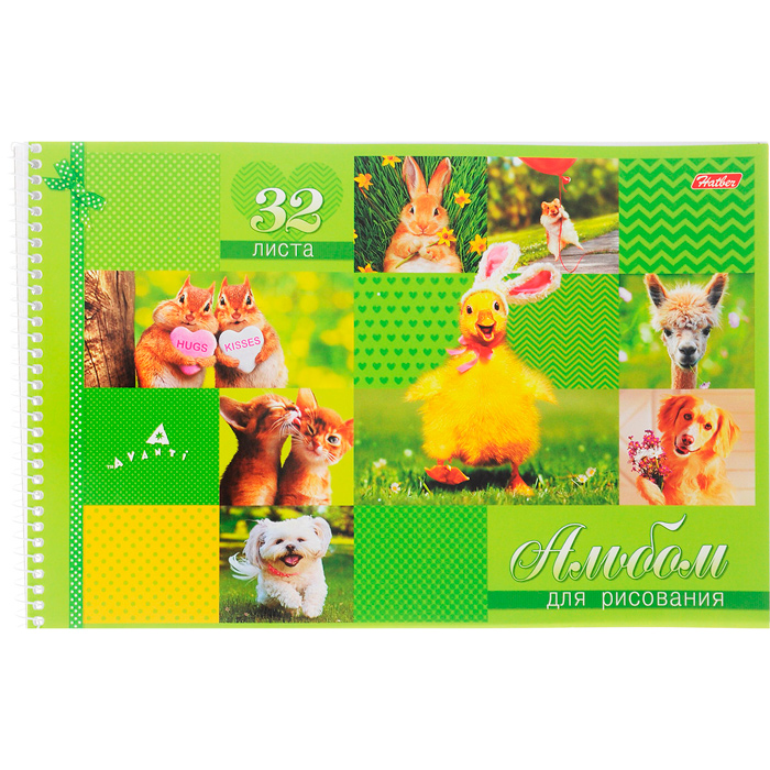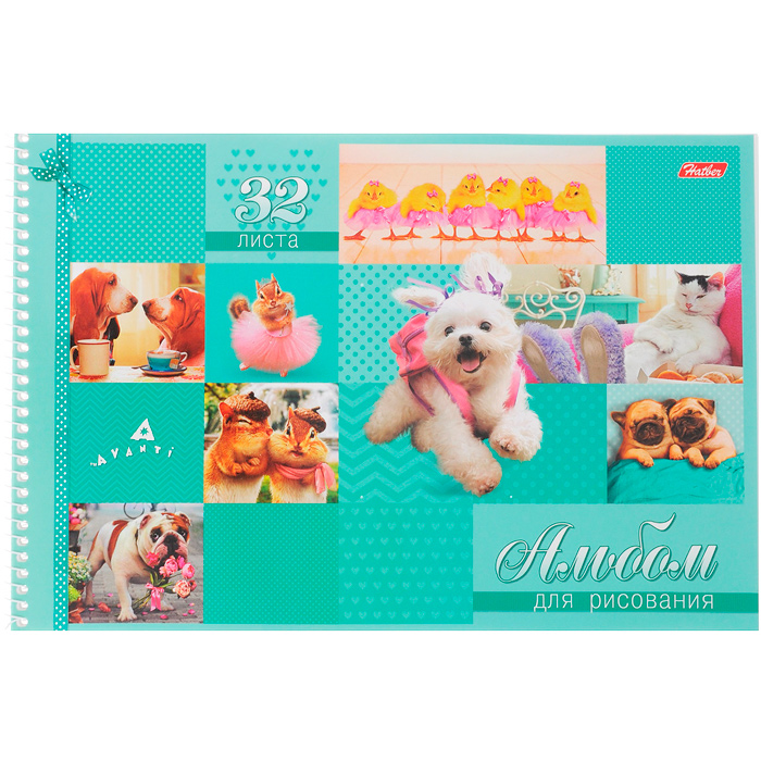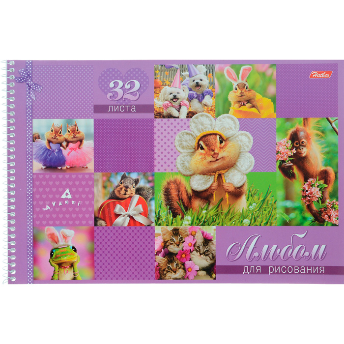 Альбом для рисования серии "Милашки" формата А4 имеет обложку из мелованного картона с цветным изображением ассорти. Внутренний блок состоит из 32 листов офсетной бумаги плотностью 100 г/кв.м, скрепленных с помощью спирали с перфорацией на отрыв. Подходит для занятий и детского творчества.
