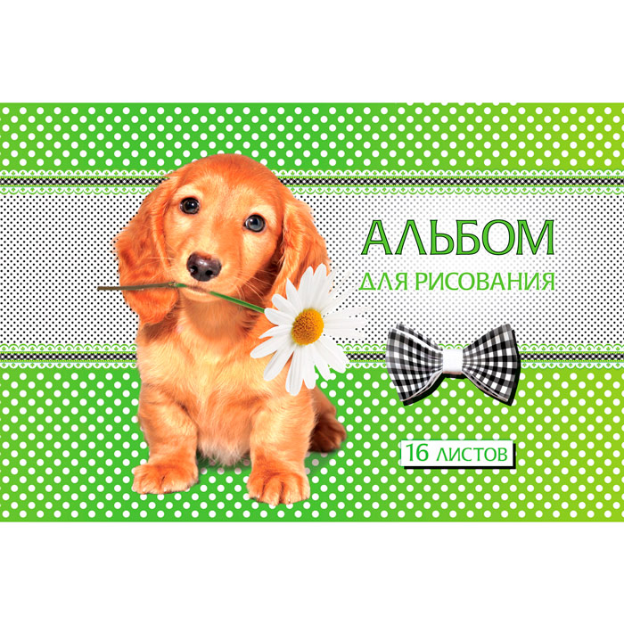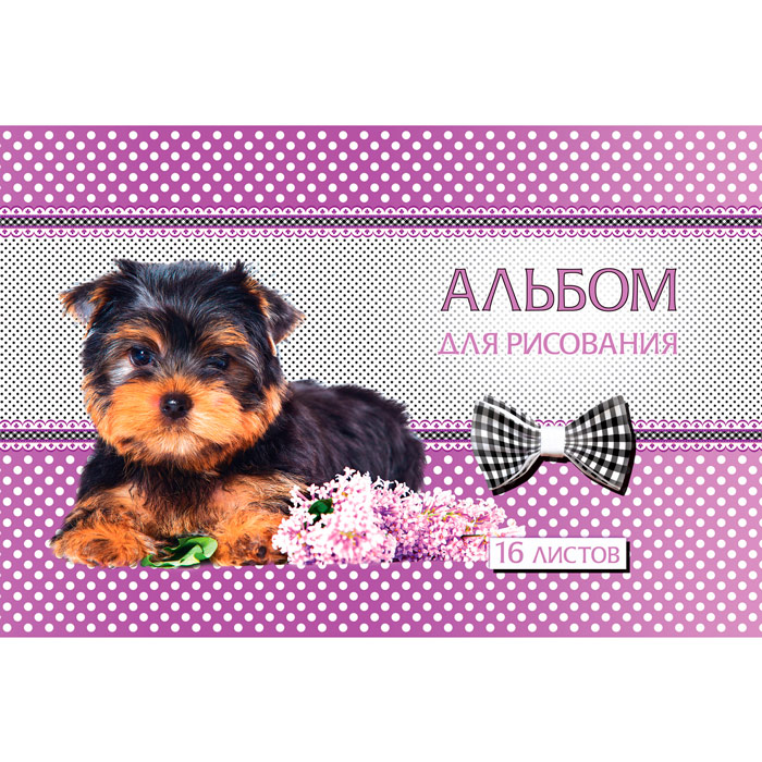 Альбом для рисования серии "Щенки" формата А4 имеет мелованную обложку 120 г/кв.м,с цветным изображением ассорти. Внутренний блок состоит из 16 листов офсетной бумаги плотностью 100 г/кв.м, скрепленных с помощью скобы. Подходит для занятий и детского творчества.