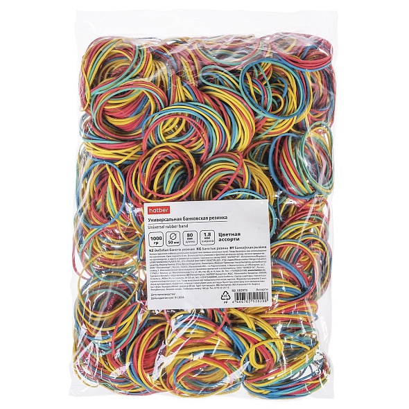 Банковская резинка, изготовленная из 100% натурального материала, каучука. Банковская резинка Hatber, имеет диаметр 50 мм и длину 80 мм. Вес упаковки составляет 1000 г.