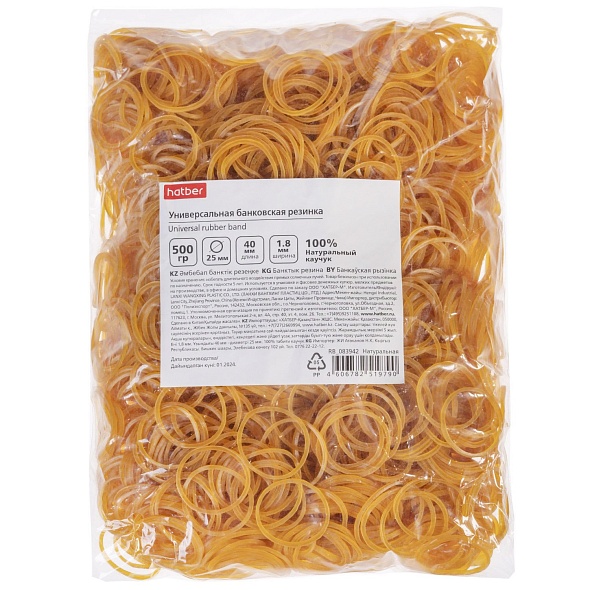 Резинка банковская желтая от Hatber — удобный и практичный канцелярский товар. Диаметр — 25 мм, длина — 40 мм. В упаковке 500 г резинок в пакете.