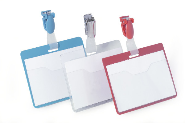 Бэйдж для посетителей из прозрачного ПВХ, с поворотным клипом. Карман открыт на одну треть для быстрой замены вкладыша.