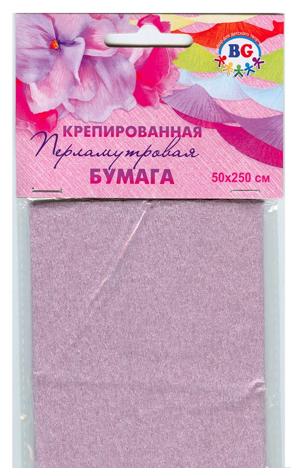Бумага цветная крепированная перламутровая "BG", 50x250см, сиреневая, в пакете