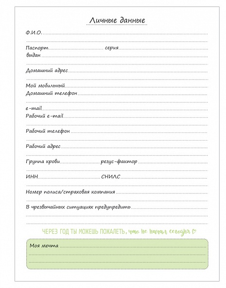 Универсальный ежедневник-планер недатированный А5 формата (168х213мм) Внутренний блок: 96 листов, офсет 80Г/КВ.М Обложка: твердый переплет. Скрепление: пластиковая спираль. Ежедневник с функцией планера с оригинальным внутренним блоком. Подойдет для тех, кто любит записывать все мелочи, чтобы не упустить важное в потоке информации. В ежедневнике помимо основной личной информации, есть множество полезных разделов. Вы можете планировать свой бюджет на весь год, на месяц или неделю. При этом планы на каждую неделю можно строить по дням более развернуто. Также можно отмечать свои поездки и готовиться к ним заранее. Трекер привычек поможет начать чаще бегать по утрам. Удобно записывать дни рождения, а также рекомендации «что почитать» и «что посмотреть». А раздел с логинами и паролями позволит оставаться всегда на связи в мессенджерах. И, конечно, используйте разделы «для заметок», «интересных фактов и крылатых фраз».