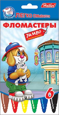 Фломастеры "Hatber", 6 цветов, серия "Jumbo - Пушистики", в картонной упаковке