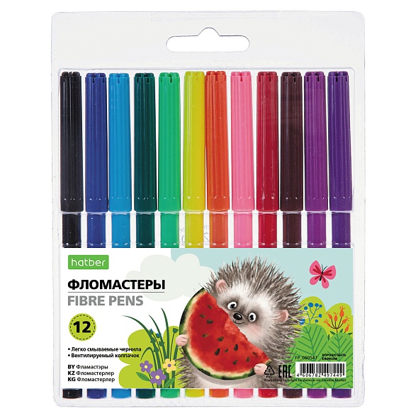 В наборе 12 фломастеров для рисования на бумаге. Корпус изготовлен из полипропилена, имеет вентилируемый колпачок. Легко смываемые чернила не токсичны и безопасны для детей. Срок годности: 3 года. Длина линии: не менее 500 метров. Фломастеры упакованы в блистер с петлей-европодвесом.