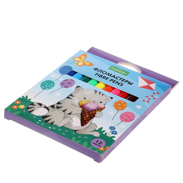 В наборе 12 фломастеров для рисования на бумаге. Корпус изготовлен из полипропилена, имеет вентилируемый колпачок. Легко смываемые чернила не токсичны и безопасны для детей. Срок годности: 3 года. Длина линии: не менее 500 метров. Фломастеры упакованы в картонную коробку с европодвесом