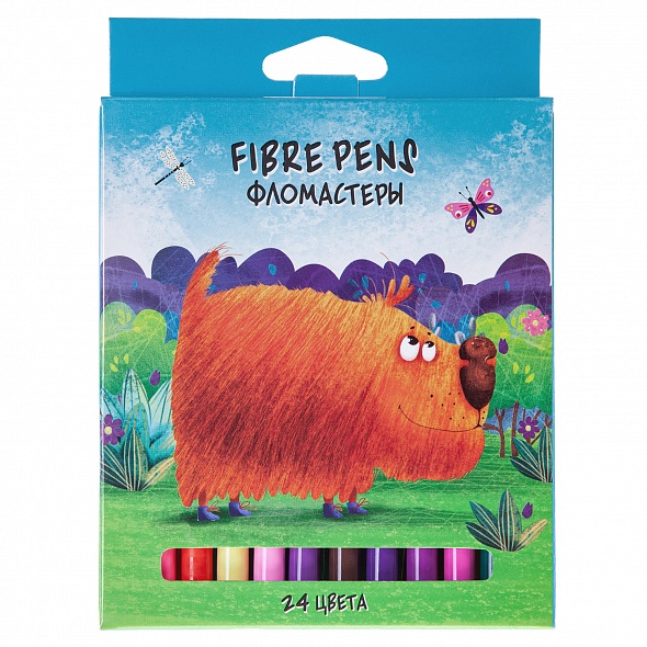 В наборе 24 фломастера для рисования на бумаге. Корпус изготовлен из полипропилена, имеет вентилируемый колпачок. Легко смываемые чернила не токсичны и безопасны для детей. Срок годности: 3 года. Длина линии: не менее 500 метров. Фломастеры упакованы в картонную коробку с европодвесом.