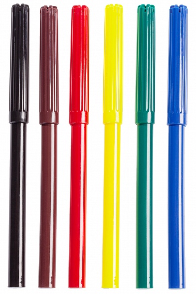 В наборе 6 фломастеров для рисования на бумаге. Корпус изготовлен из полипропилена, имеет вентилируемый колпачок. Легко смываемые чернила не токсичны и безопасны для детей. Срок годности: 3 года. Длина линии: не менее 500 метров. Фломастеры упакованы в картонную коробку с европодвесом.