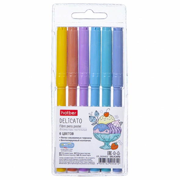 Фломастеры для рисования на бумаге и раскрашивания, подходят для детей младшего и школьного возраста. Мягкая пастельная цветовая гамма расширяют возможности для творчества: добавляют рисункам мягкости и спокойствия, создают невесомое настроение и дарят ощущение уюта и безопасности. Чернила нетоксичны и безопасны для детей, легкосмываемые с рук и одежды. Специальная форма пишущего узла предотвращает его проваливание внутрь корпуса при сильном нажатии. Увеличенный размер пишущего узла: 2,3 мм. Увеличенная длина письма: 600м. Дополнительные грани на колпачке предотвращают случайное скатывание фломастера со стола. Данные фломастеры подходят для фломографа HATBER. Фломастеры упакованы в блистер с европодвесом.