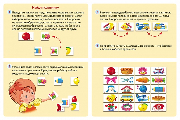 Обучающие игры для детей, созданные по принципу пазла. Эти красочные увлекательные игры помогут ребенку быстро и легко научиться составлять слова из букв и слогов, складывать и вычитать в пределах 20,находить состав числа. Для самых маленьких рекомендуем игру "Найди половинку". Наряду с развитием логики и формированием навыков чтения и счета, дети будут развивать мелкую моторику, необходимую для совершенствования мышления и речи. Все элементы игр выполнены на плотном картоне. Внутри коробки с игрой находится инструкция с простыми правилами. Размер карточек 5,5х6 см.