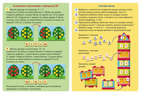 Обучающие игры для детей, созданные по принципу пазла. Эти красочные увлекательные игры помогут ребенку быстро и легко научиться составлять слова из букв и слогов, складывать и вычитать в пределах 20, находить состав числа. Для самых маленьких рекомендуем игру "Найди половинку". Наряду с развитием логики и формированием навыков чтения и счета, дети будут развивать мелкую моторику, необходимую для совершенствования мышления и речи. Все элементы игр выполнены на плотном картоне. Внутри коробки с игрой находится инструкция с простыми правилами.