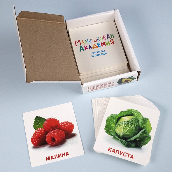 Развивающие карточки «Малышковая Академия» - это яркий и полезный набор для малышей, который поможет сделать первые шаги в познании окружающего мира. В комплект входит 60 карточек из мелованного картона с безопасными закруглёнными углами. Матовая ламинация делает карточки тактильно приятными, защищает от загрязнений и устраняет блики. Яркие иллюстрации на белом фоне, четкие подписи и лаконичный дизайн способствуют благоприятному развитию ребенка. Надежная компактная коробочка с глянцевой ламинацией позволит брать набор с собой на прогулку или в поездку.Карточки предназначены для занятий с детьми с самого раннего возраста и способствуют развитию памяти, внимания, воображения и расширению словарного запаса. Подходят для индивидуальных и групповых занятий. Наглядное пособие рекомендуется использовать для увлекательных игр, обучения в игровой форме и совместного времяпрепровождения с ребёнком.В серии доступны 8 тематических наборов: «Животный мир», «Овощи и фрукты», «Кто что ест», «Мой дом» «Одежда и части тела», «Окружающий мир», «Продукты и посуда» и «Транспорт и техника».Размер каждой карточки - 90х100 мм.Картонная коробка - 100х140 мм.