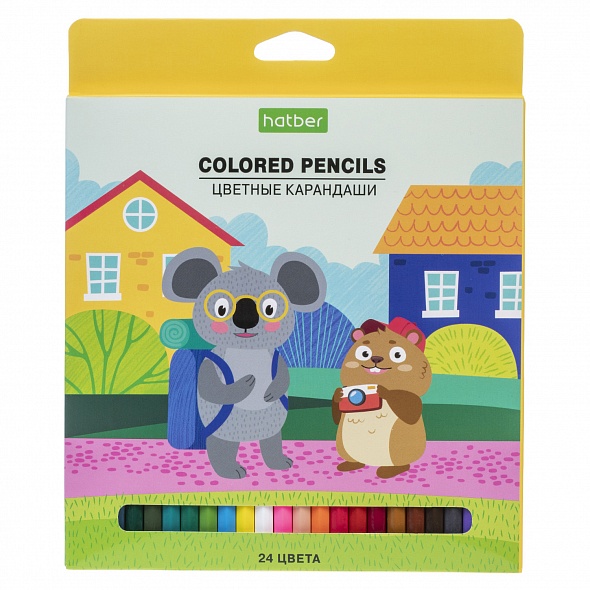 В наборе 24 шестигранных цветных карандаша с заточенным грифелем. Корпус изготовлен из высококачественной древесины, гладкость которой обеспечена многослойной покраской. Их удобно держать в руках, они легко затачиваются, имеют прочный грифель. Яркие насыщенные цвета оставляют мягкие штрихи и ровно ложатся на бумагу. Карандаши помогут юным художникам развить мелкую моторику рук, цветовое восприятие, фантазию и воображение. Упакованы в картонную лакированную коробку с петлей-европодвесом.