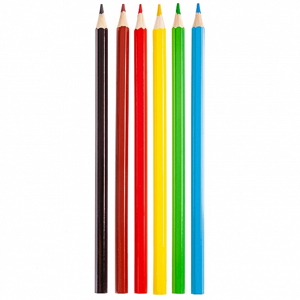 В наборе 6 шестигранных цветных карандашей с заточенным грифелем. Корпус изготовлен из высококачественной древесины, гладкость которой обеспечена многослойной покраской. Их удобно держать в руках, они легко затачиваются, имеют прочный грифель. Яркие насыщенные цвета оставляют мягкие штрихи и ровно ложатся на бумагу. Карандаши помогут юным художникам развить мелкую моторику рук, цветовое восприятие, фантазию и воображение. Упакованы в картонную лакированную коробку с петлей-европодвесом.
