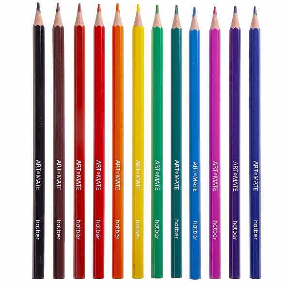 Карандаши цветные ART MATE с классическим шестигранным корпусом. Изготовлены из легкого пластика. Затачиваются значительно легче деревянных карандашей. Мягко ложатся на бумагу, оставляя яркие штрихи. Безопасны при разломе, не оставляют острых краев. Картонная коробка легко трансформируется в удобную подставку для карандашей. Отлично подходят для детского творчества.