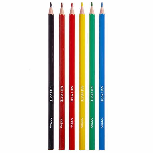 Карандаши цветные ART MATE с классическим шестигранным корпусом. Изготовлены из легкого пластика. Затачиваются значительно легче деревянных карандашей. Мягко ложатся на бумагу, оставляя яркие штрихи. Безопасны при разломе, не оставляют острых краев. Картонная коробка легко трансформируется в удобную подставку для карандашей. Отлично подходят для детского творчества.