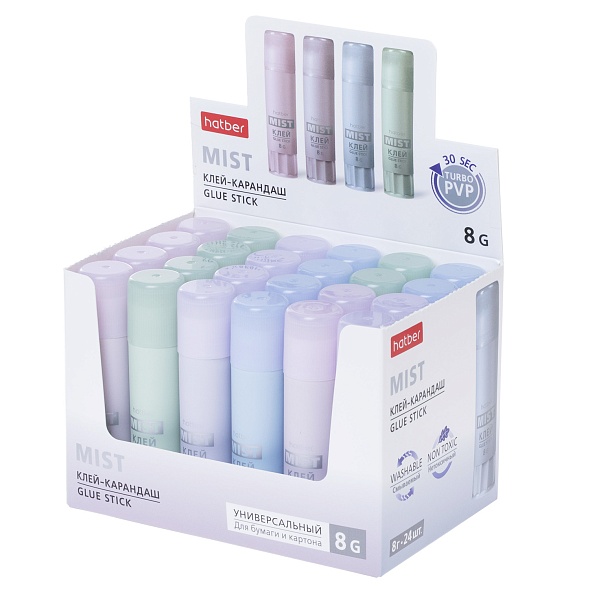 Клей-карандаш надёжно склеивает изделия из бумаги, картона и ткани. Новая формула на PVP основе склеивает бумагу за 30 сек, не деформируя ее и не оставляя следов после высыхания. Он экономичен в использовании, не токсичен и смываемый. Надежный колпачок предохраняет клей от высыхания. Клей-карандаш легко скользит и гладко наносится на склеиваемую поверхность, выдерживает низкие температуры. Пригоден для использования на работе, дома и в школе. Объем: 8 гр. Упаковка: 24 шт. в картонной дисплей-витрине.