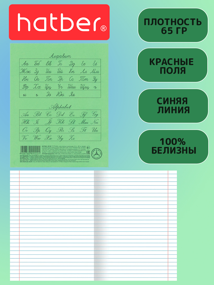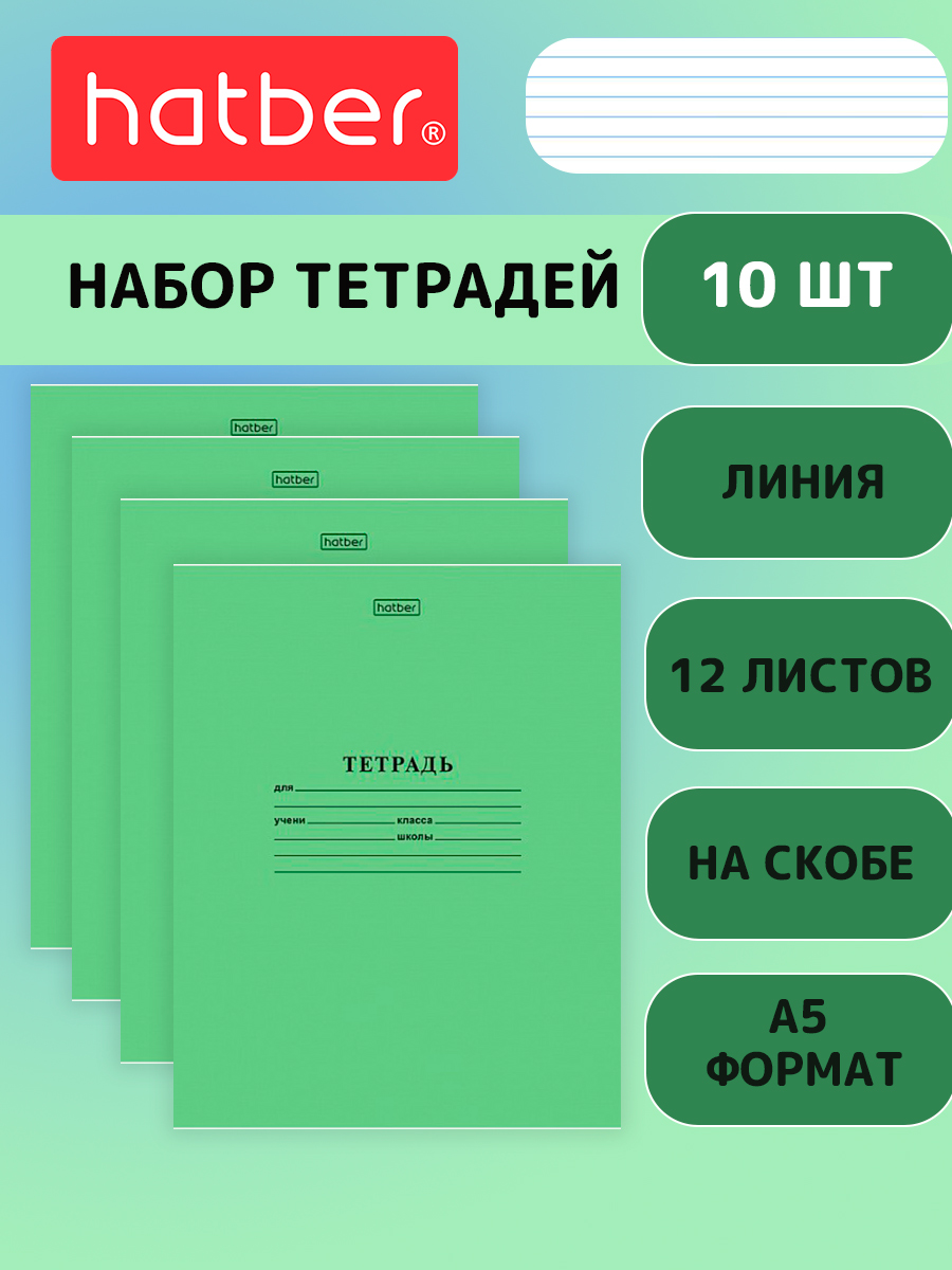 Тетрадь А5 формата 12 листов. Обложка: тонированный офсет. Внутренний блок: офсет 65 гр., линия, красные поля. Скрепление: скоба. Тетрадь подойдет для занятий любому школьнику, используется для письма шариковыми, гелевыми и капиллярными ручками. Тетради ТМ Hatber российского производства отпечатаны на современном высокотехнологичном оборудовании и соответствуют стандартам качества.