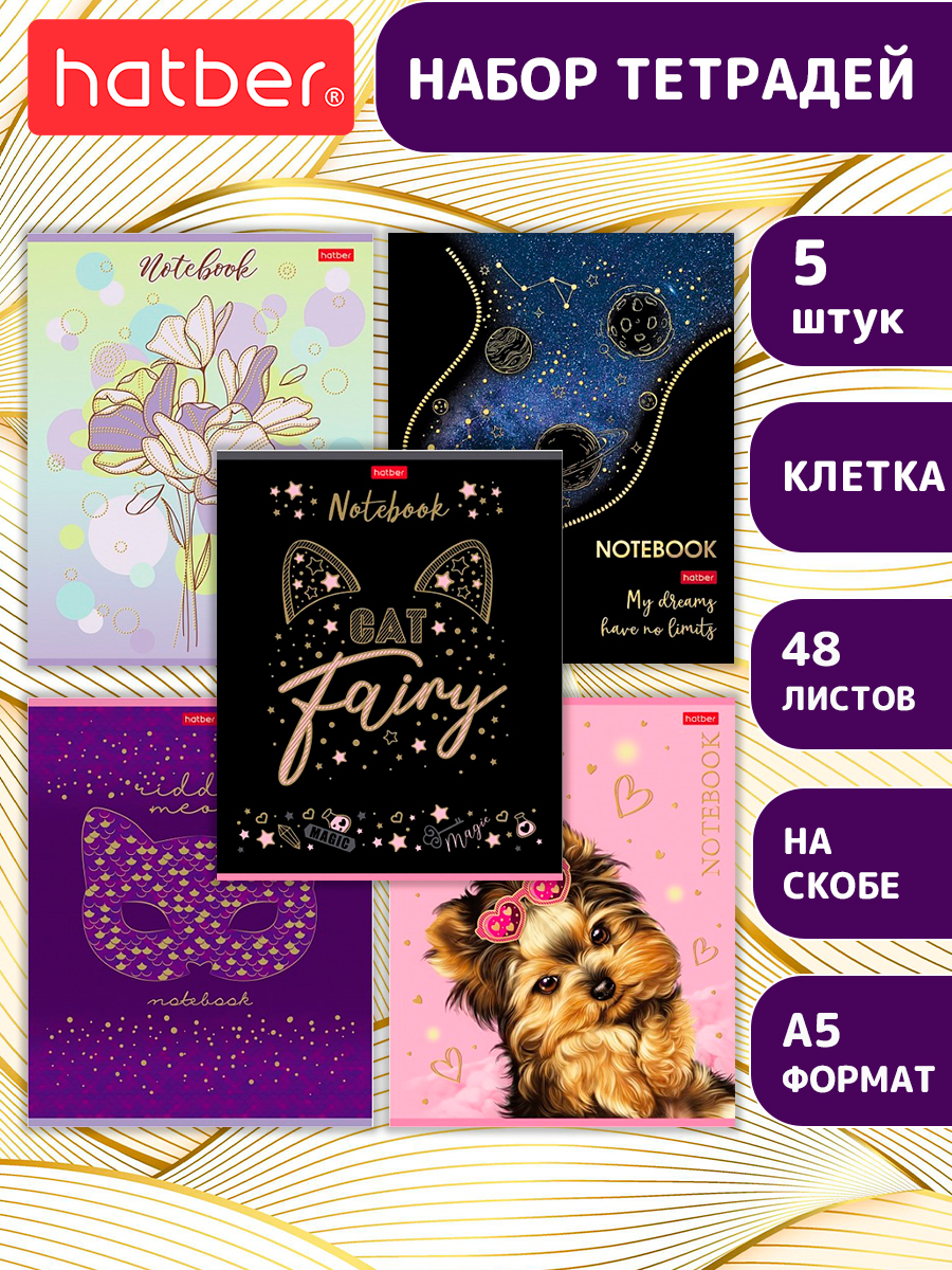 Тетрадь А5 формата 48 листов. Обложка- мелованный картон. Дополнена спецэффектами в виде матовой ламинации и 3D фольги. Внутренний блок- офсет 65 гр.м, клетка, красные поля. Скрепление- скоба. Тетрадь предназначена для записей, подойдет для старшей школы, вуза, дома и офиса. Скругленные уголки помогут надолго сохранить привлекательный внешний вид тетради. В комплекте 5 шт.