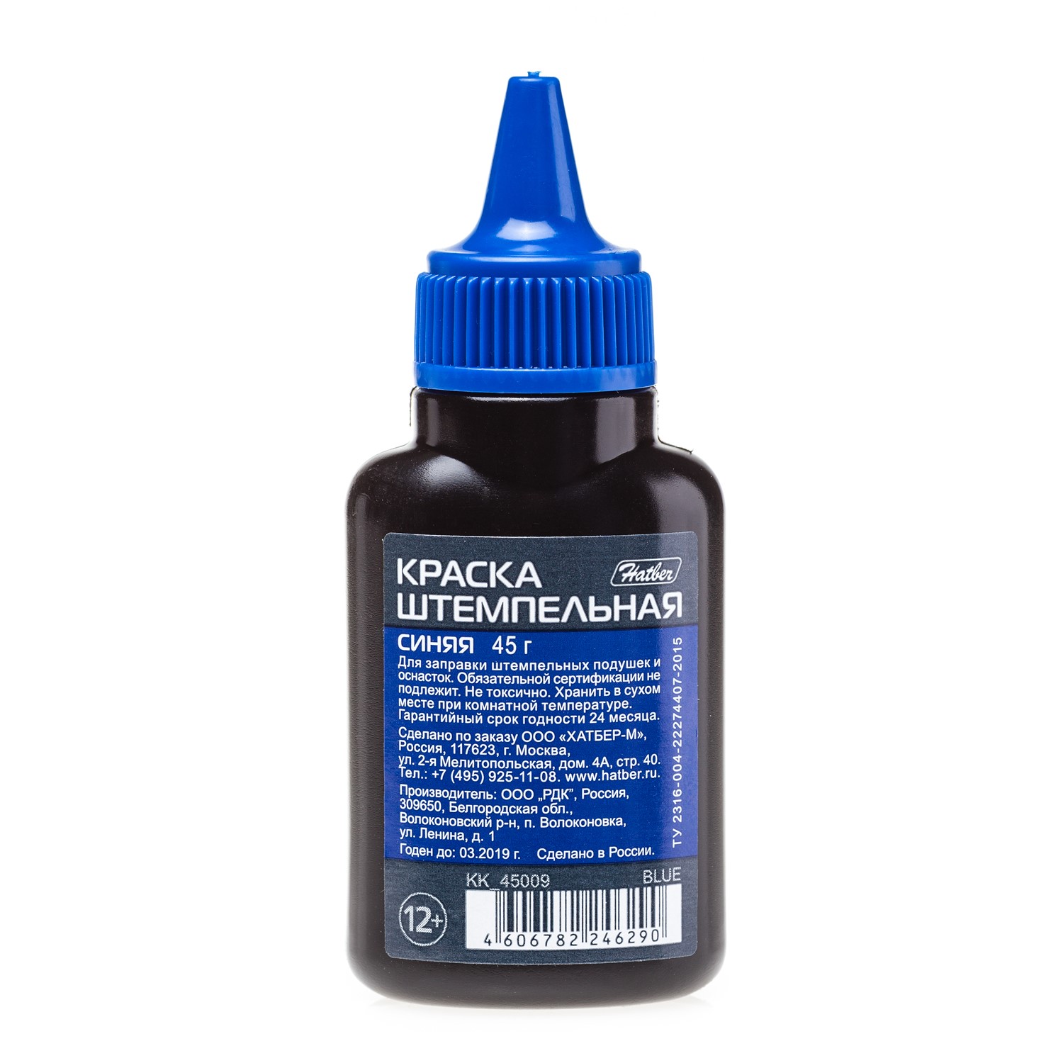 Широкое применение в офисной работе находит штепсельная краска Hatber на водной основе. Она позволяет заправлять печати, штампы и факсимиле насыщенным ярко-синим цветом. Емкость с краской оснащена удобным дозатором, потому добавлять ее в штампы всегда легко. При этом можно не переживать за чистоту рук.