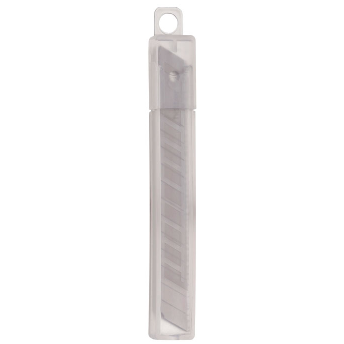 Сегментированные лезвия являются запасными элементами для канцелярского ножа. Изготовлены из нержавеющей стали, имеют долгий срок эксплуатации. Сегментированная конструкция удобна тем, что в необходимый момент можно обломить затупившийся сегмент лезвия и продолжить работу новой режущей кромкой. Это очень удобно и помогает сэкономить время, не отвлекаясь на заточку ножа. Ширина лезвия: 9 мм, двойная заточка. Упаковка: 10 шт. в пластиковом пенале, дополнительно упакованы в пакет с европодвесом.