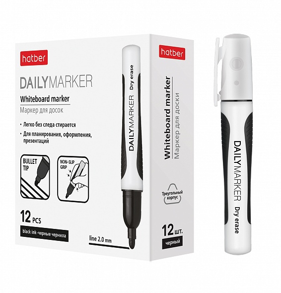 Маркер предназначен для письма на досках с магнитно-маркерной поверхностью, является необходимым инструментом при проведении презентации или семинаров. Увеличенный ресурс письма. В маркере используется высококачественные нетоксичные чернила, которые легко стираются сухой губкой для досок. Пишущий узел - закругленный, 2 мм. Упаковка - картонная коробка,12 шт.