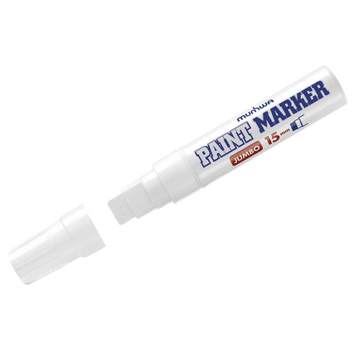 Водостойкая краска на нитрооснове не поддается атмосферным воздействиям и широко применяется в производстве для маркировки изделий из пластика, дерева, металла, камня, стекла, резины. Широкий прямоугольный пишущий узел позволяет наносить линии шириной до 15 мм.