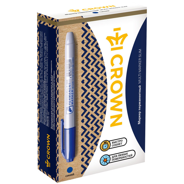 Перманентный маркер "Crown Multi Marker Slim" - универсальное решение для маркировки на всех типах поверхностей: металл, дерево, резина, бетон/камень/кирпич, стекло, пленка, картон и др.