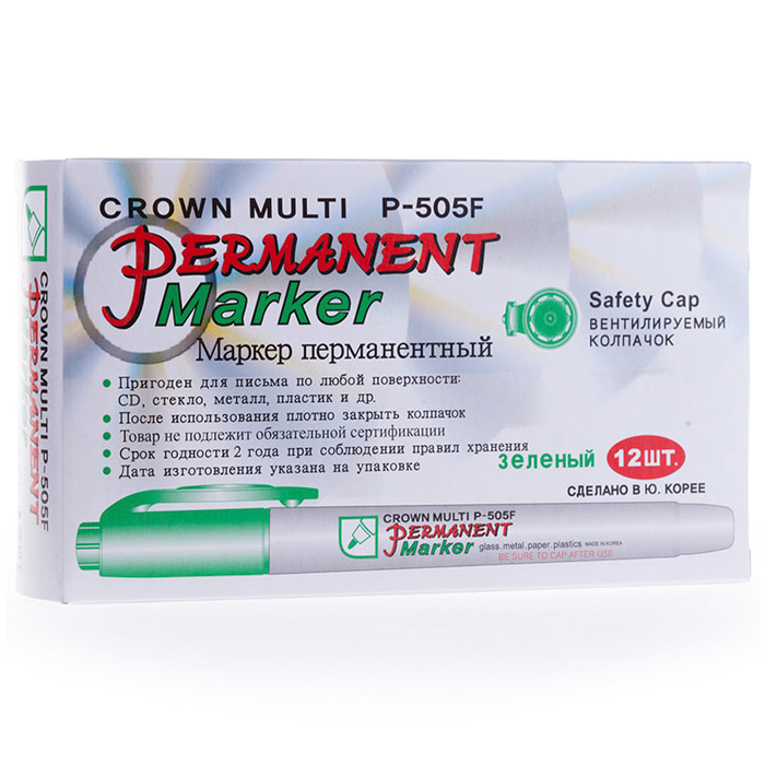 Перманентный маркер. Чернила на спиртовой основе, цвет - зеленый. Пишущий узел - 1 мм. Эргономичный изящный корпус. Круглый наконечник из высококачественного фиброволокна.