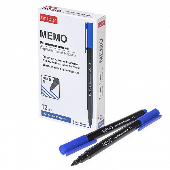 Перманентный маркер пишет на бумаге, картоне, стекле, пластике, металле, коже и большинстве других поверхностей. Компактный и надежный. Хорошая эргономика. Подходит для различных офисных, складских и домашних работ. Устойчивые к влаге и воде чернила. Пишущий узел: закругленный 1 мм. Цвет чернил: синий. Упаковка: картонная коробка 12 штук.