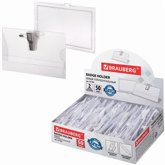 Горизонтальный жесткий бейдж BRAUBERG для именной карточки предназначен для идентификации сотрудников в компаниях, а также на семинарах, тренингах, презентациях и других мероприятиях.