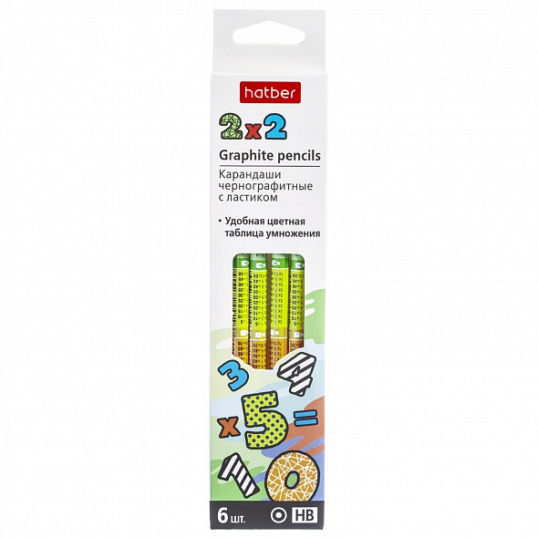 Чернографитный карандаш для черчения, рисования и письма. Круглый корпус, дополнен таблицей умножения. Хорошо и ровно точится. Прочный грифель диаметром 2 мм и твердостью HB. С ластиком. Заводская заточка. Упаковка: индивидуальная картонная коробка, 6 штук.