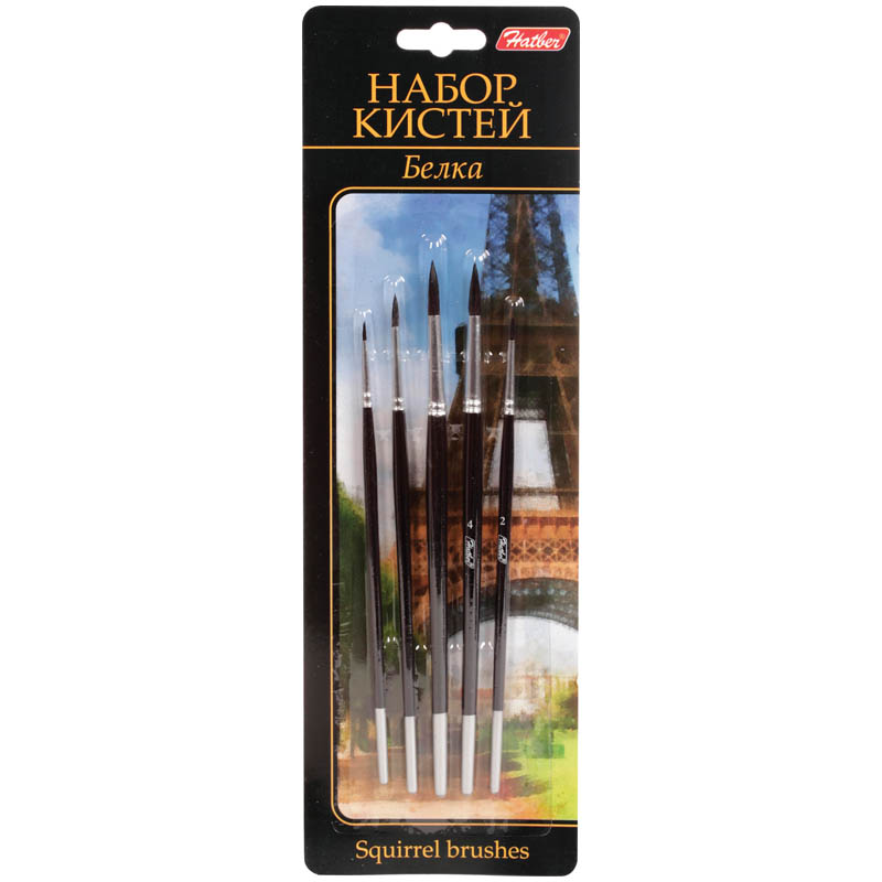 Кисти из набора идеально подойдут для художественных и декоративно-оформительских работ. В набор входят круглые кисти с ворсом из волоса белки №1, №2, №3, №4, №5. Кисти универсальны, ими могут пользоваться как дети, так и профессиональные художники. Упаковка: блистер с европодвесом.