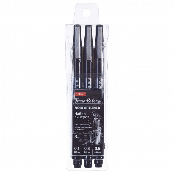 Наборы линеров Terra Colora Noir (Нуар) подходят для школьников, студентов и взрослых пользователей. Долговечные и надежные наконечники от японского производителя гарантируют гладкое, без пропусков письмо и стабильную ширину линий. Яркие пигментные чернила не выцветают, устойчивы к воде и спиртовым маркерам, не растекаются, не размазываются и не просачиваются сквозь большинство типов бумаг. В набор входят 3 черных линера с самыми популярными пишущими узлами - 0.10.30.5 мм- для рисунков, иллюстраций, скетчей, комиксов, чертежей и акварелей, а также подходят для создания архивных и лабораторных записей и маркировок. Упаковка: в прозрачном ПВХ-боксе.