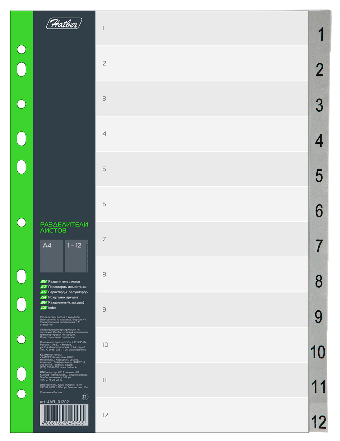 Универсальная перфорация подходит для всех видов папок и имеет 11 отверстий. Выступающие цветные табуляторы дополнительно укреплены УФ-лаком. Новинки имеют индивидуальную упаковку в пленку, которая служит дополнительной защитой от внешних неблагоприятных воздействий.