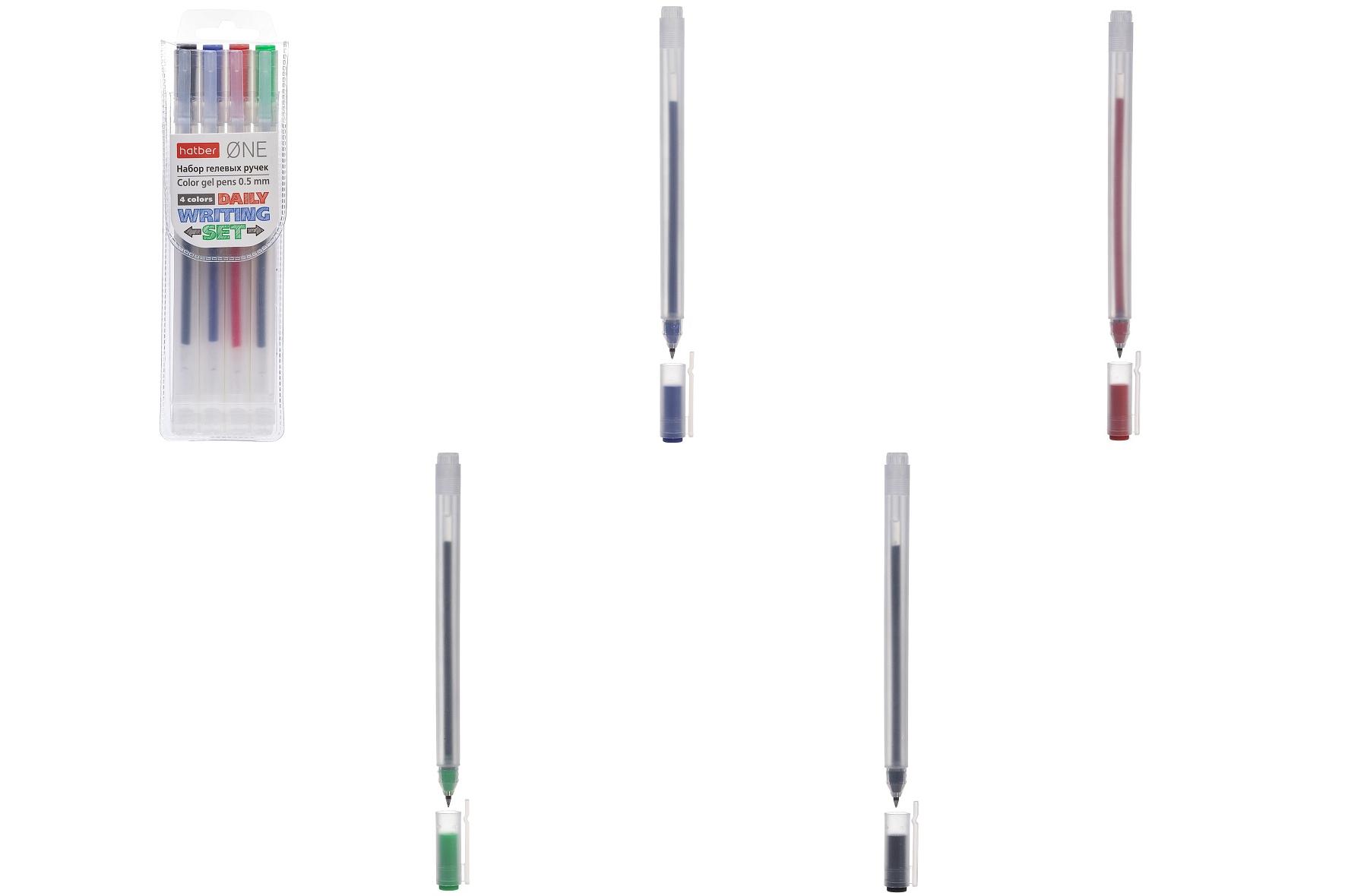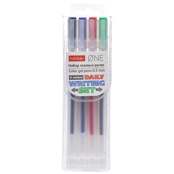 Набор гелевых ручек Hatber One 4 цв. 0,5мм в пластиковом пенале с европодвесом