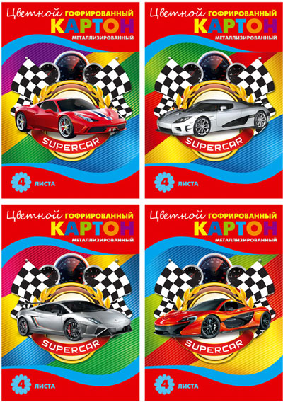 Набор цветного картона "BG", 4л, А4, металлизированный, гофрированный, в папке, серия "Авто"