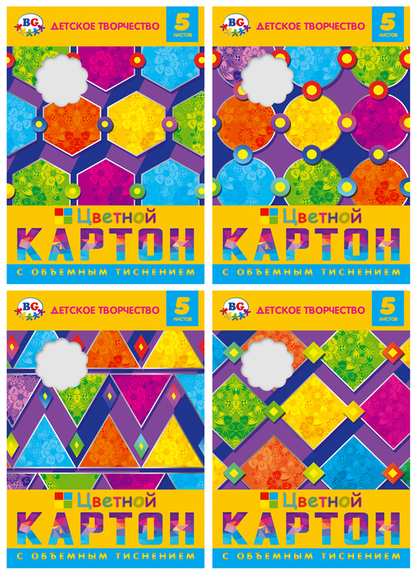 Наименование: Набор цветного картона фольгированного с объёмным тиснением 5 листов А4 "Яркие формы"
