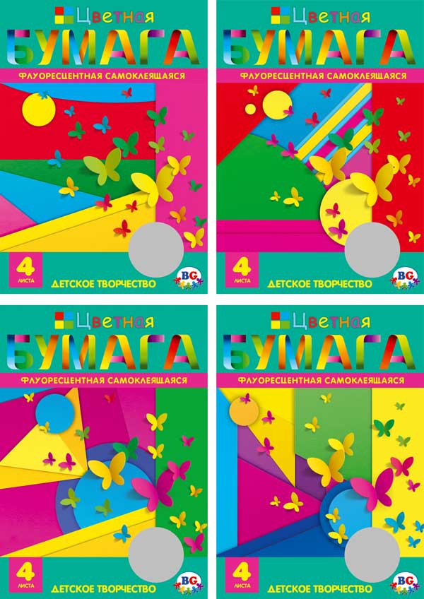 Наименование: Набор флуоресцентной самоклеящейся цветной бумаги 4 л.А4 "Стайка бабочек"(ассорти) в папке