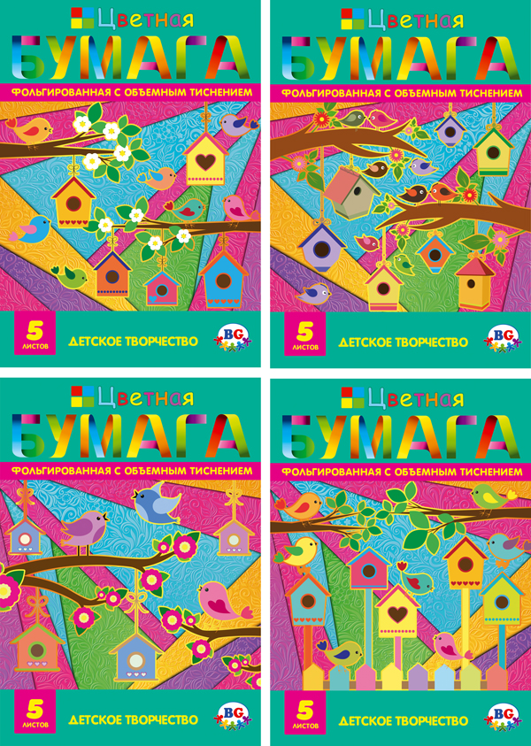 Наименование: Набор цветной бумаги фольгированной с объемным тиснением 5 листов А4 "Весенние птицы"(ассорти)
