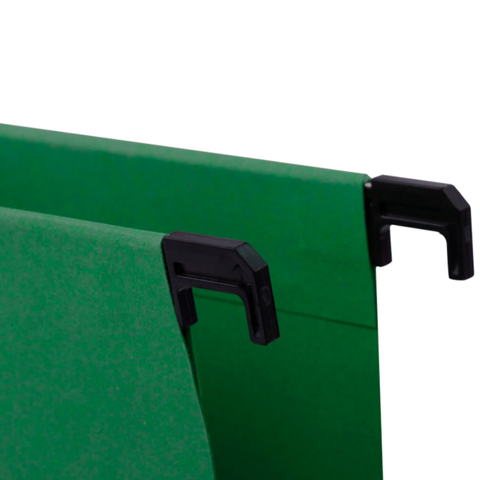 Папки V-образной формы изготовлены из высококачественного картона зеленого цвета плотностью 220 г/м2 и обладают повышенной прочностью. Вмещают до 80 листов. Размер папки без крючков составляет 315х245 мм, с крючками - 350х245 мм. В комплект входят 10 папок, а так же 10 прозрачных пластиковых табуляторов с ярлычками шириной 65 мм.