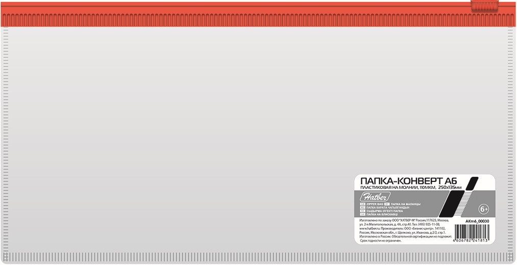 Папка-конверт Hatber на молнии выполнена из ульрапрочного прозрачного пластика плотностью 110 мкм. Еще одним ее преимуществом становится приятная цена.