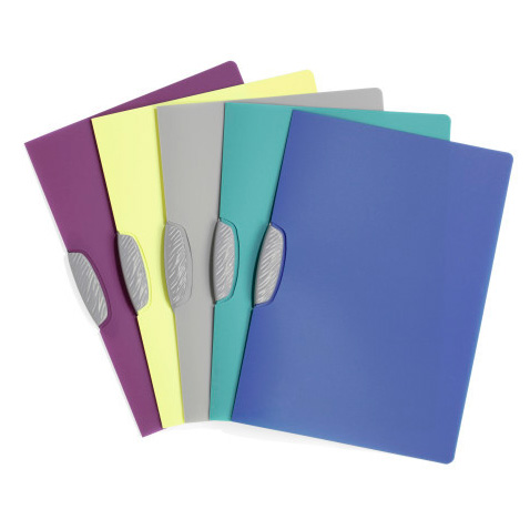 Папка выполнена из цветного матового пластика, подвижный пластиковый клип цвета папки. Клип идеально удерживает от 1 до 30 листов формата А4. Специальная конфигурация фронтального листа папки позволяет без проблем открывать папку, не раскрывая зажим.