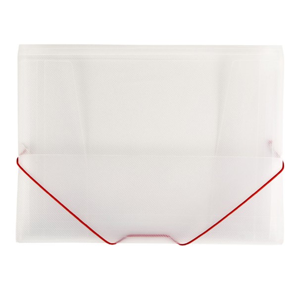 Предназначена для транспортировки и хранения большого количества бумаг. Надежные угловые резинки. Изготовлена из плотного полупрозрачного пластика с фактурой "диагональ" толщиной 0,4 мм. Клапаны надежно защищают документы от повреждений и загрязнений. Боковая сторона расширяется до 40 мм. Индивидуальная упаковка в пакет.