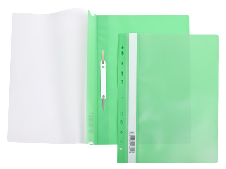 Папка-скоросшиватель является незаменимым атрибутом для студента, школьника, офисного работника. Предназначена для хранения и транспортировки рабочих бумаг и документов формата А4. Изделие оснащено верхним прозрачным матовым листом и металлическим зажимом внутри для надежного удержания бумаг, дополнено прозрачным кармашком на корешке со съемной этикеткой для маркировки. На фронтальной части корешка изделия имеется артикул и штрих-код для удобства продаж в розницу. Также папка-скоросшиватель отличается перфорированным корешком, позволяющим подшить документы в архивные системы, учитывая внутреннюю логику, например, по годам, адресам или фамилиям. Такая возможность облегчает поиск необходимых документов в большом массиве информации. Плотность: 140 (верх) и 180 (низ) мкм. Папка вмещает до 100 листов.