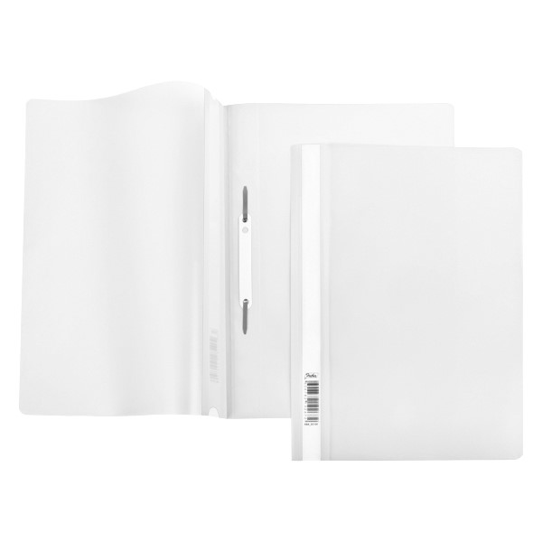 Главной отличительной особенностью этих скоросшивателей являются расположенные на фронтальной части корешка изделия — артикул и штрих-код, для удобства продаж в розницу. Формат А4. Плотность – 140/180 мкм. Упаковка – пакет 10 шт./короб 500 шт.