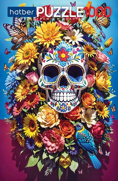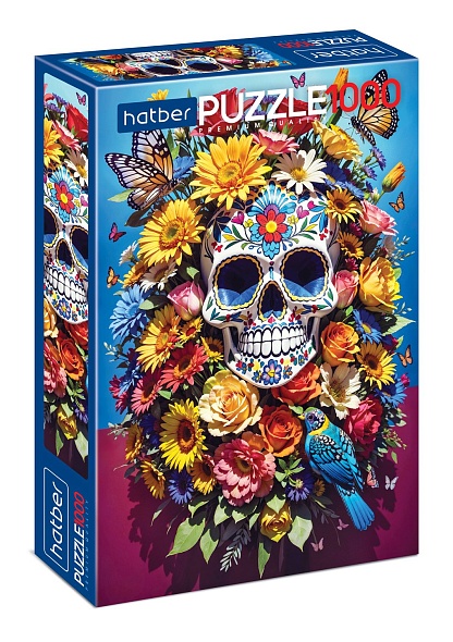 Пазлы "Hatber Premium", 1000 элементов, А2, 480х680мм, серия "Цветочный череп"