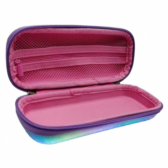 Каркасный пенал на молнии. Выполнен из современного пористого EVA материала с голографическим покрытием. Внутри вместительное отделение и сетчатый карман на молнии. Пенал возможно использовать как футляр для очков. В дополнение к пеналу можно приобрести мешок для обуви из голографического материала такого же цвета. Упаковка пластиковый бокс с европодвесом. Размер 215х90х53мм.